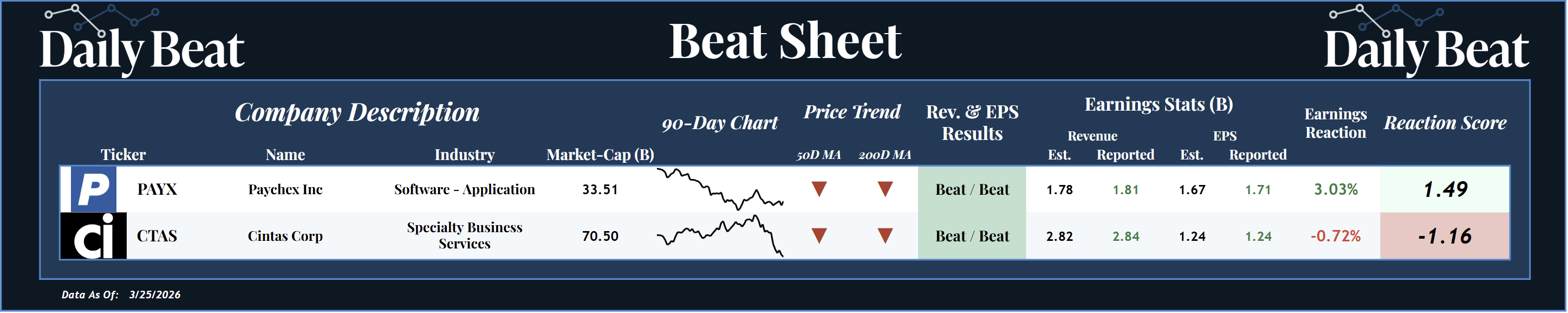 Both Paychex $PAYX and Cintas $CTAS delivered double beats, coming in ahead of expectations on both revenue and earnings.