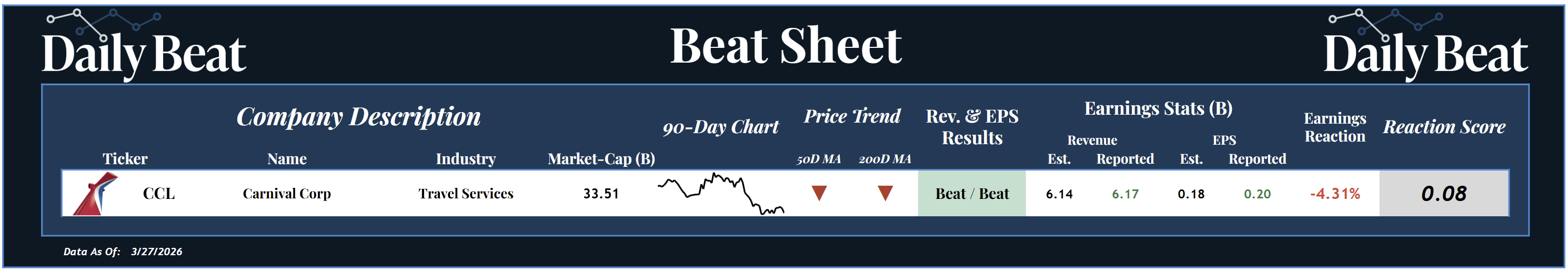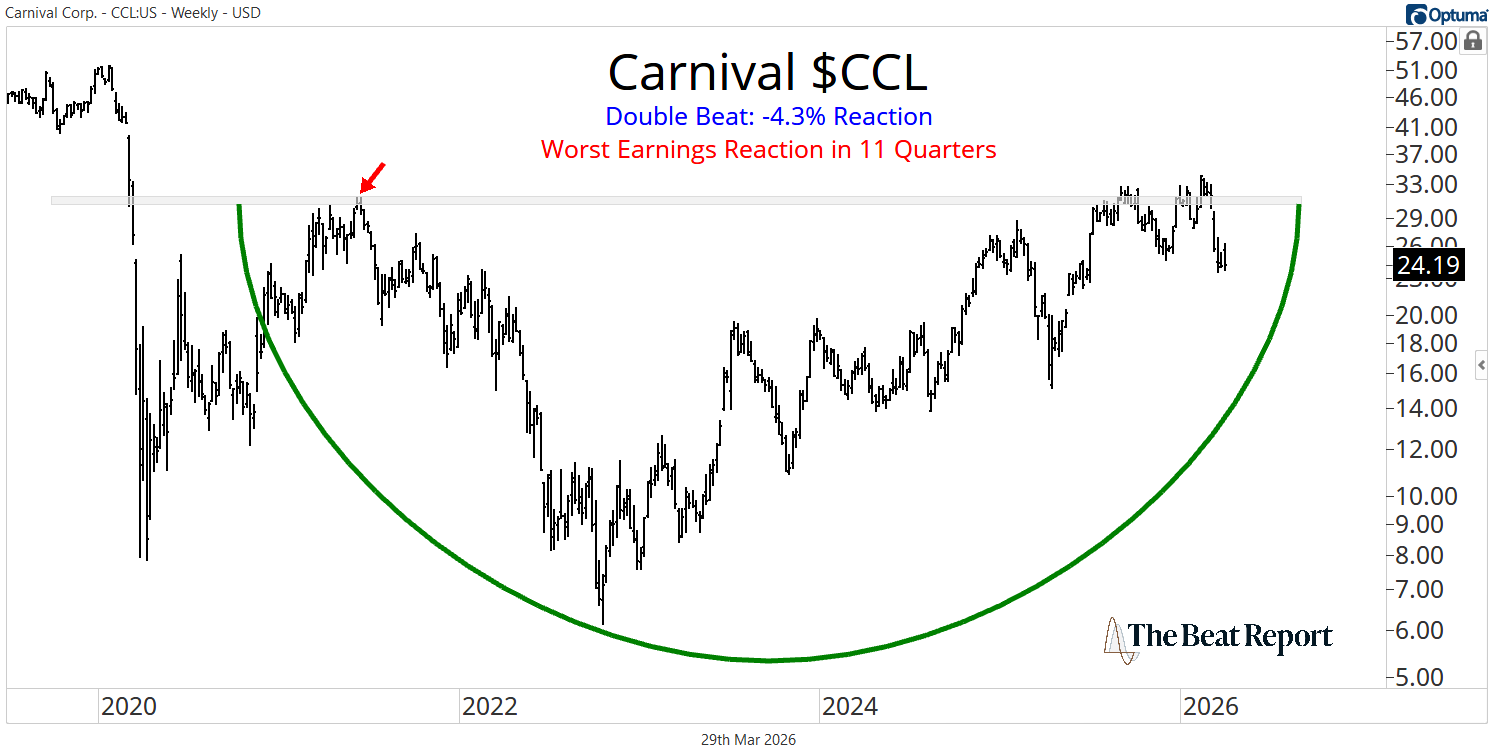 Despite the strong results, CCL closed down -4.3% on the session… marking its worst earnings reaction in the past 11 quarters.