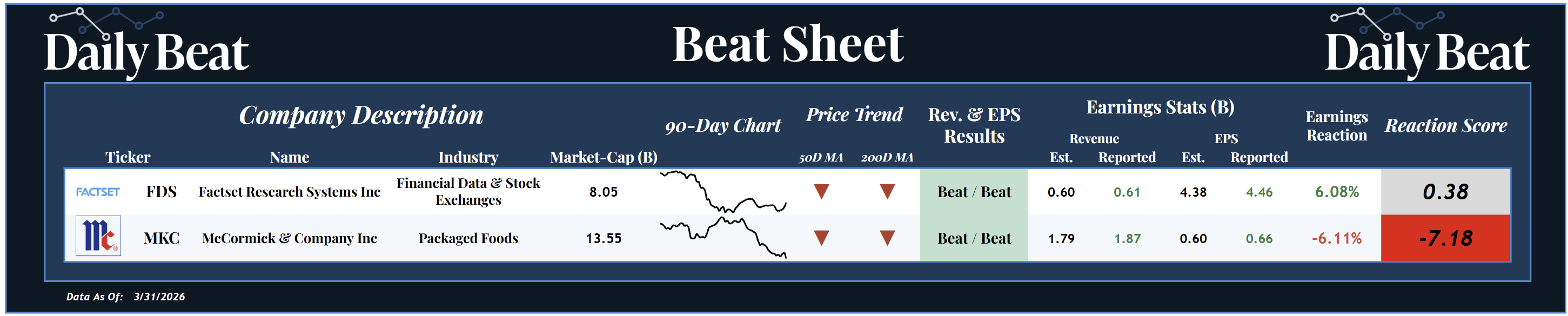 Both FactSet $FDS and McCormick $MKC delivered better-than-expected revenue and earnings. The fundamental story, at least on the surface, looked solid across the board.