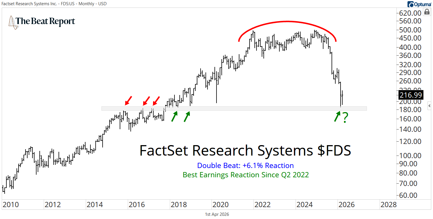FDS rallied over 6% on its report, its best earnings reaction since Q2 2022.