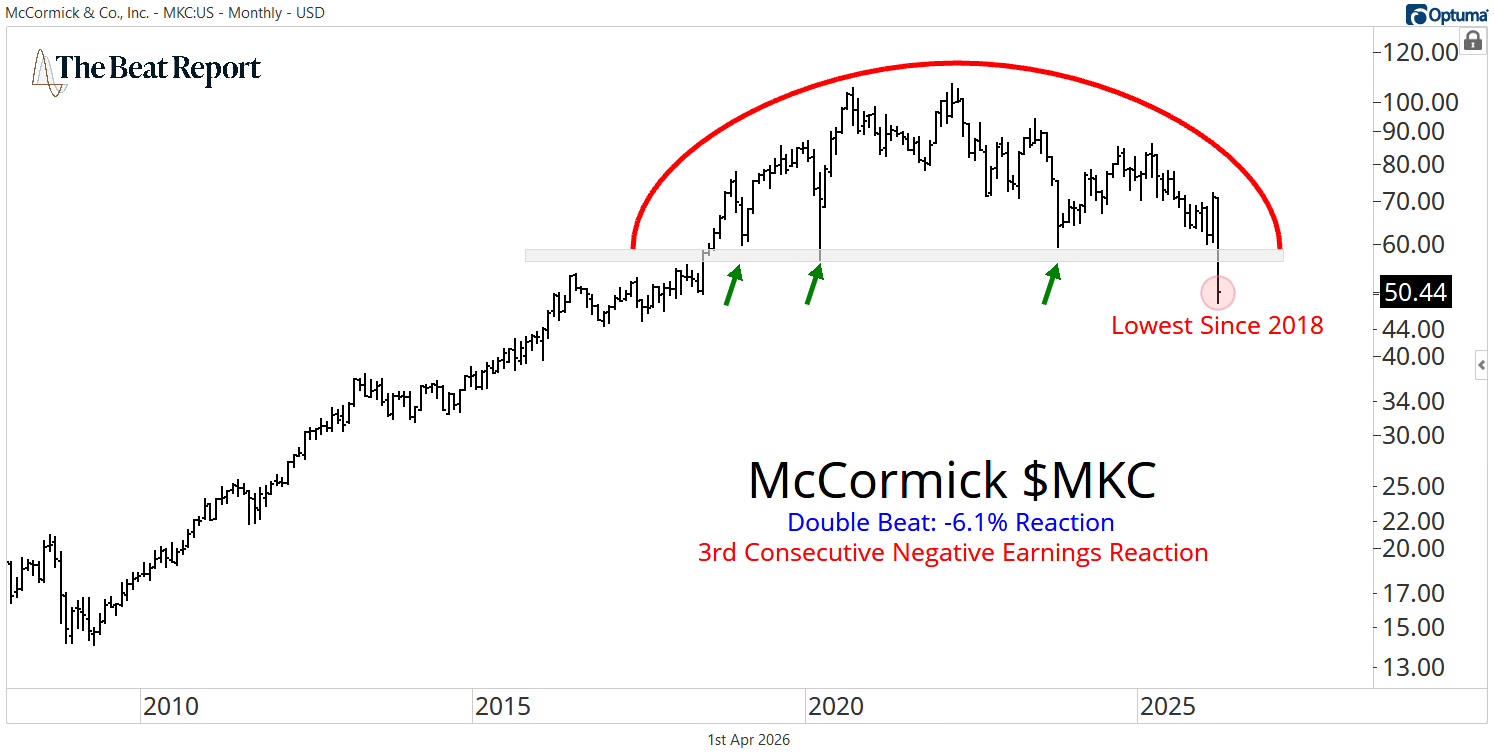 Meanwhile, McCormick dropped more than 6%, marking its third consecutive negative reaction.