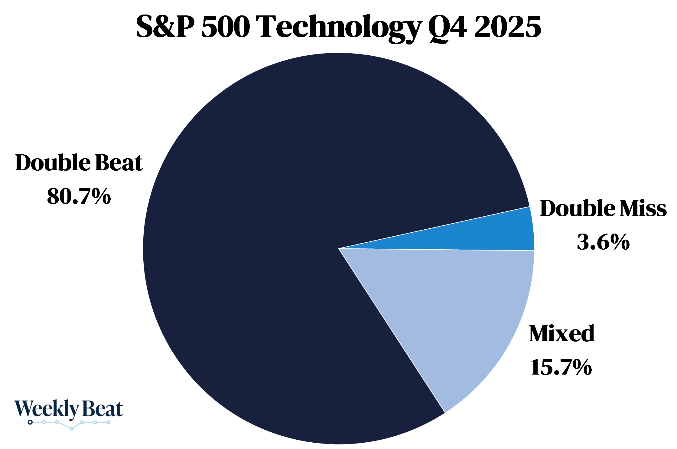 Roughly 81% of companies delivered double beats, just 3.6% posted double misses, and the rest came in mixed.