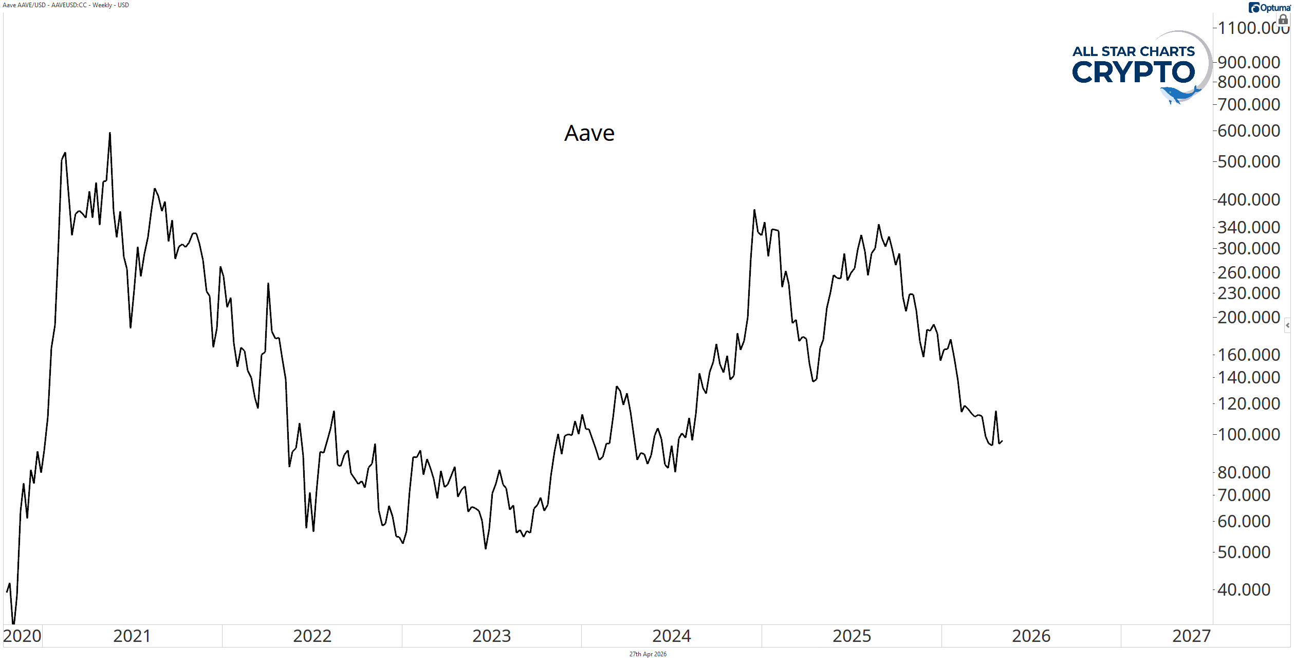 - Assets exposed to the alternative system, like AAVE, have been dead money since 2021 because the infrastructure they're built on can't perform basic risk management.