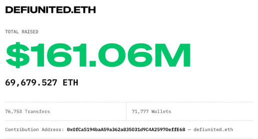 Aave has only managed to raise $160M (compared with the $300M they need to raise) from a variety of parties into a wallet called "DEFIUNITED.ETH".