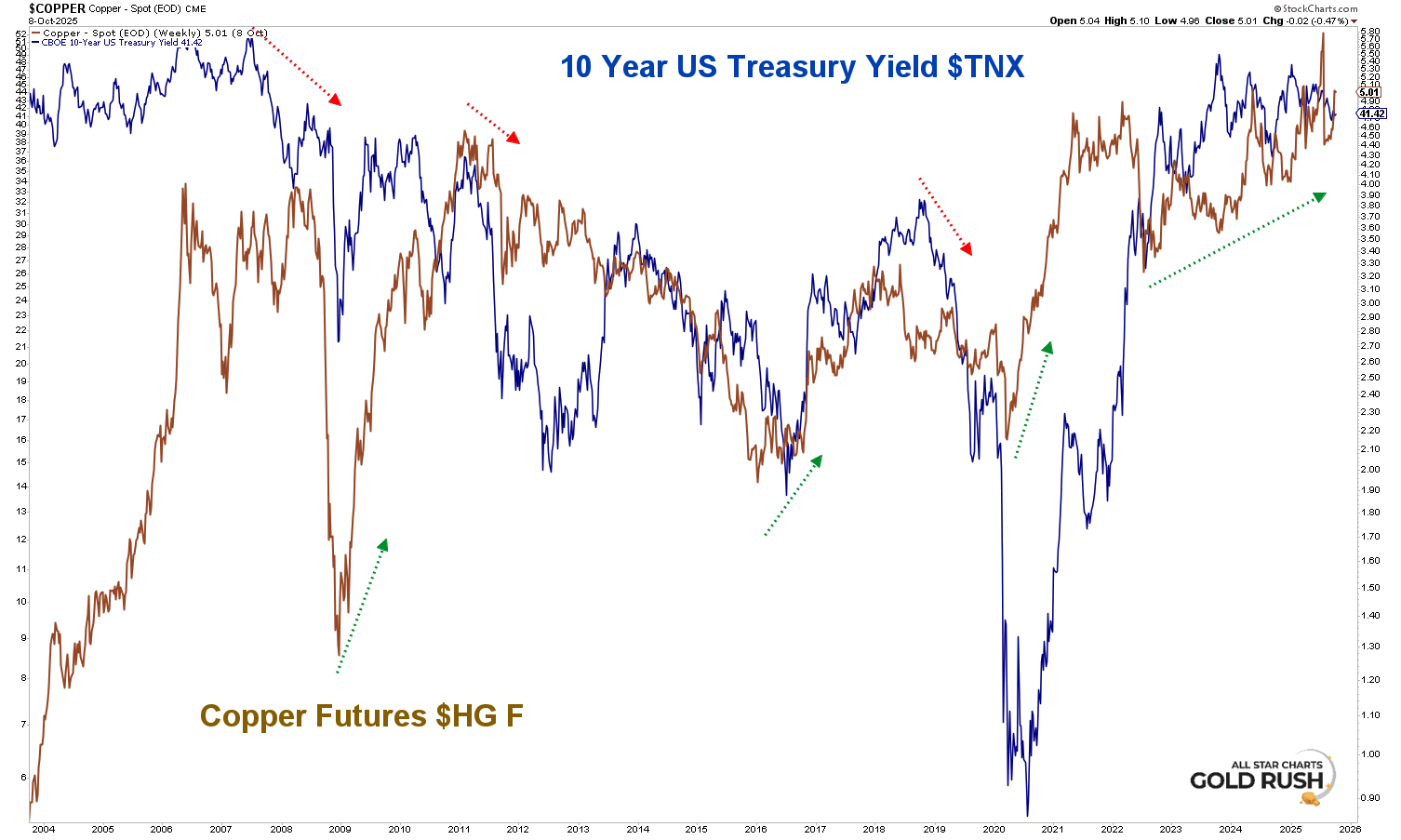 That’s why copper is such a good compass. When copper prices go up, it’s usually a sign that the economy’s running hotter, and yields move in the same direction.