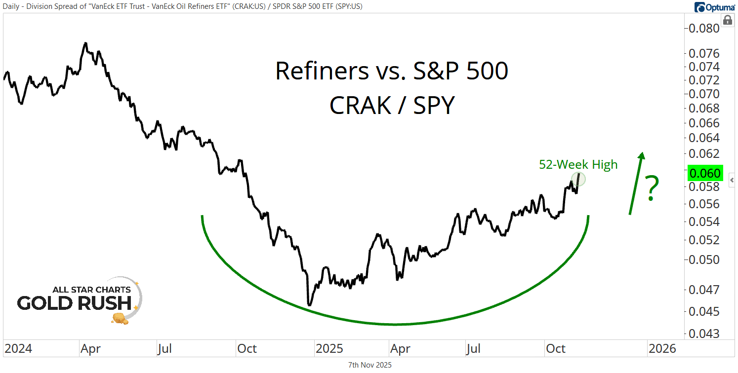 The VanEck Refiners ETF $CRAK bottomed versus the S&P 500 $SPY at the exact same moment momentum turned in the XLE/SPY ratio.