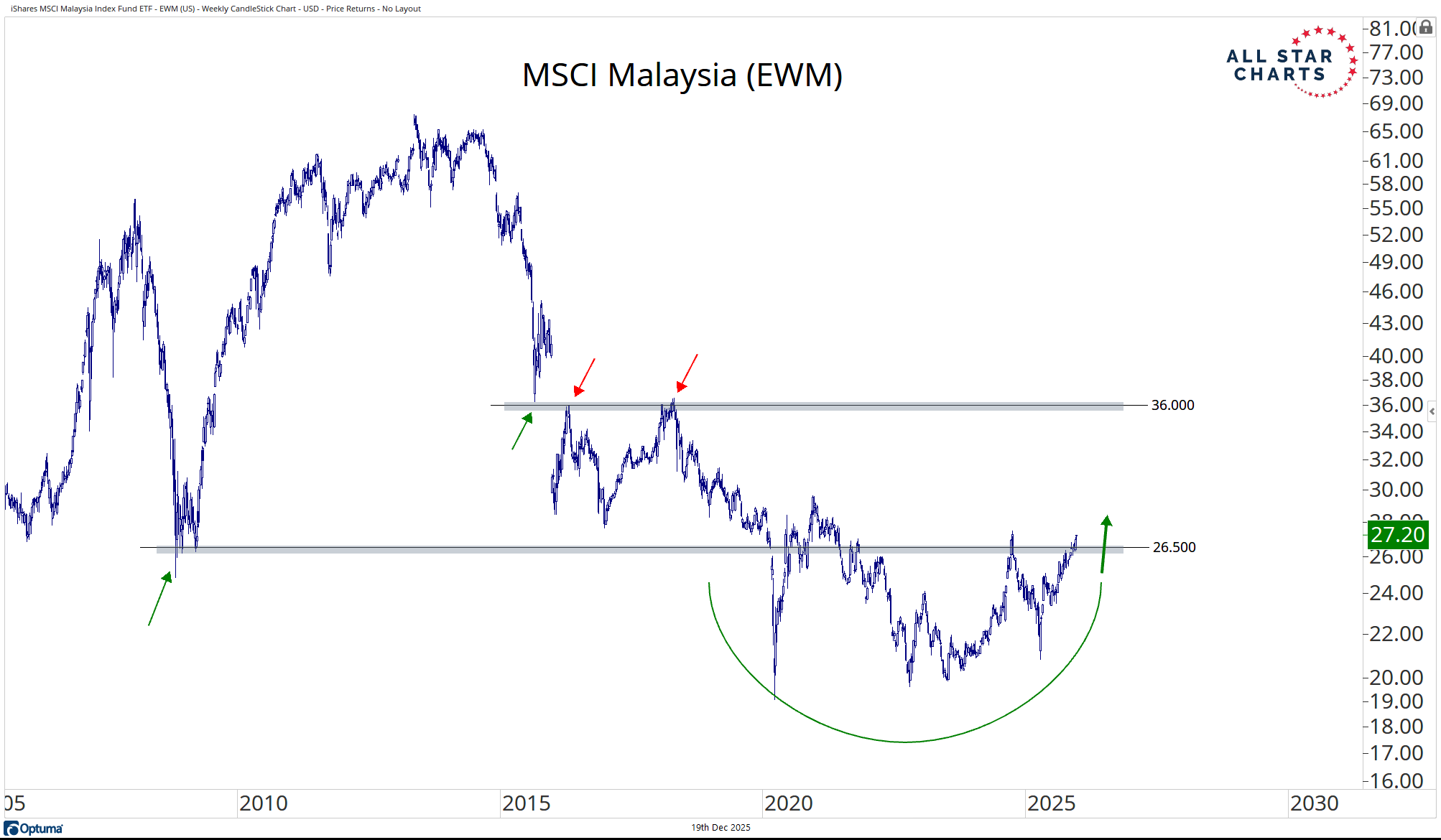For broad exposure, we’re looking at the MSCI Malaysia ETF $EWM: