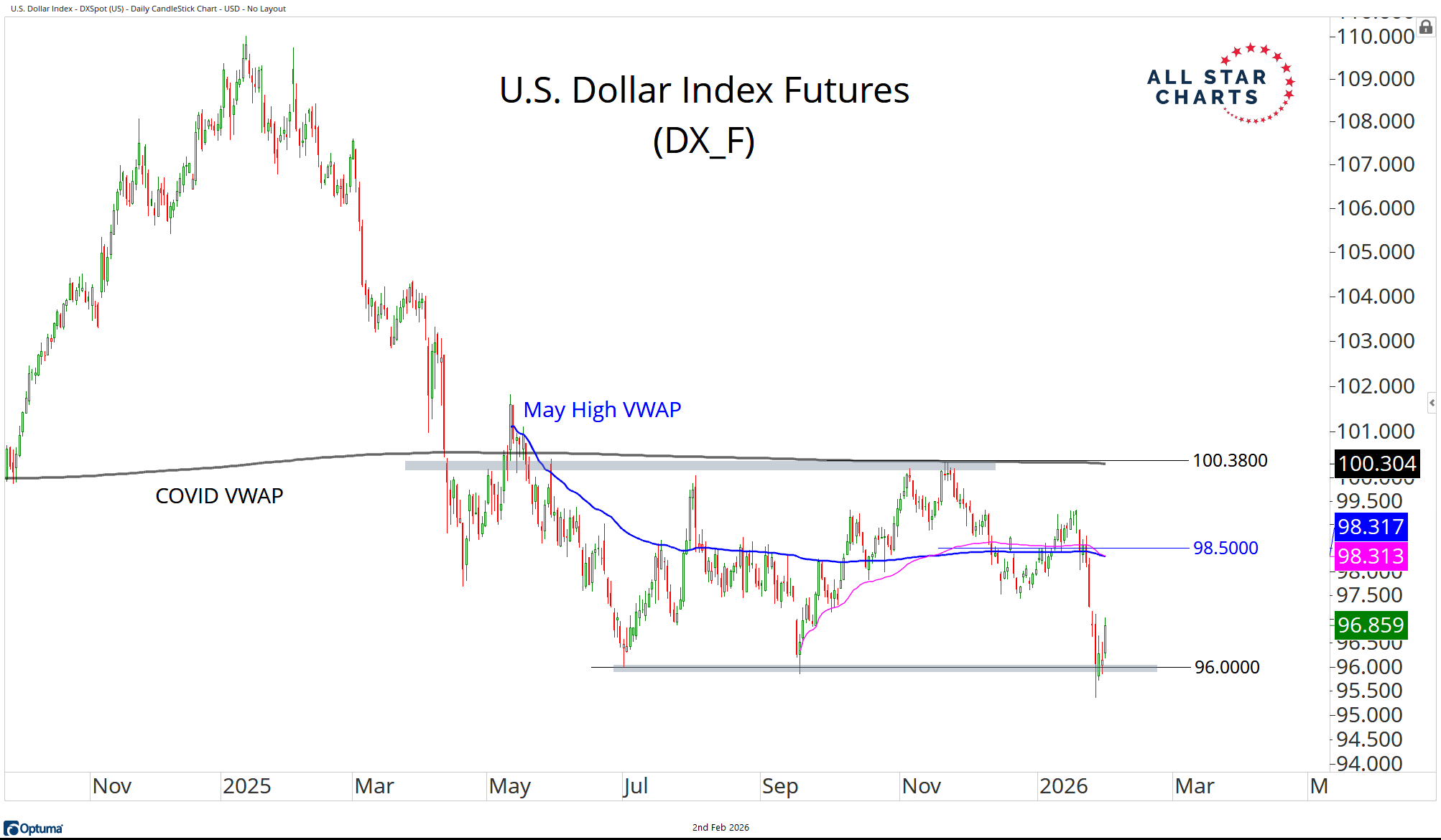 When a structural trend reaches a turning point… expect volatility. We’re a month into 2026, and the US Dollar is already stirring the pot– making big moves and flirting with the completion of a major top.