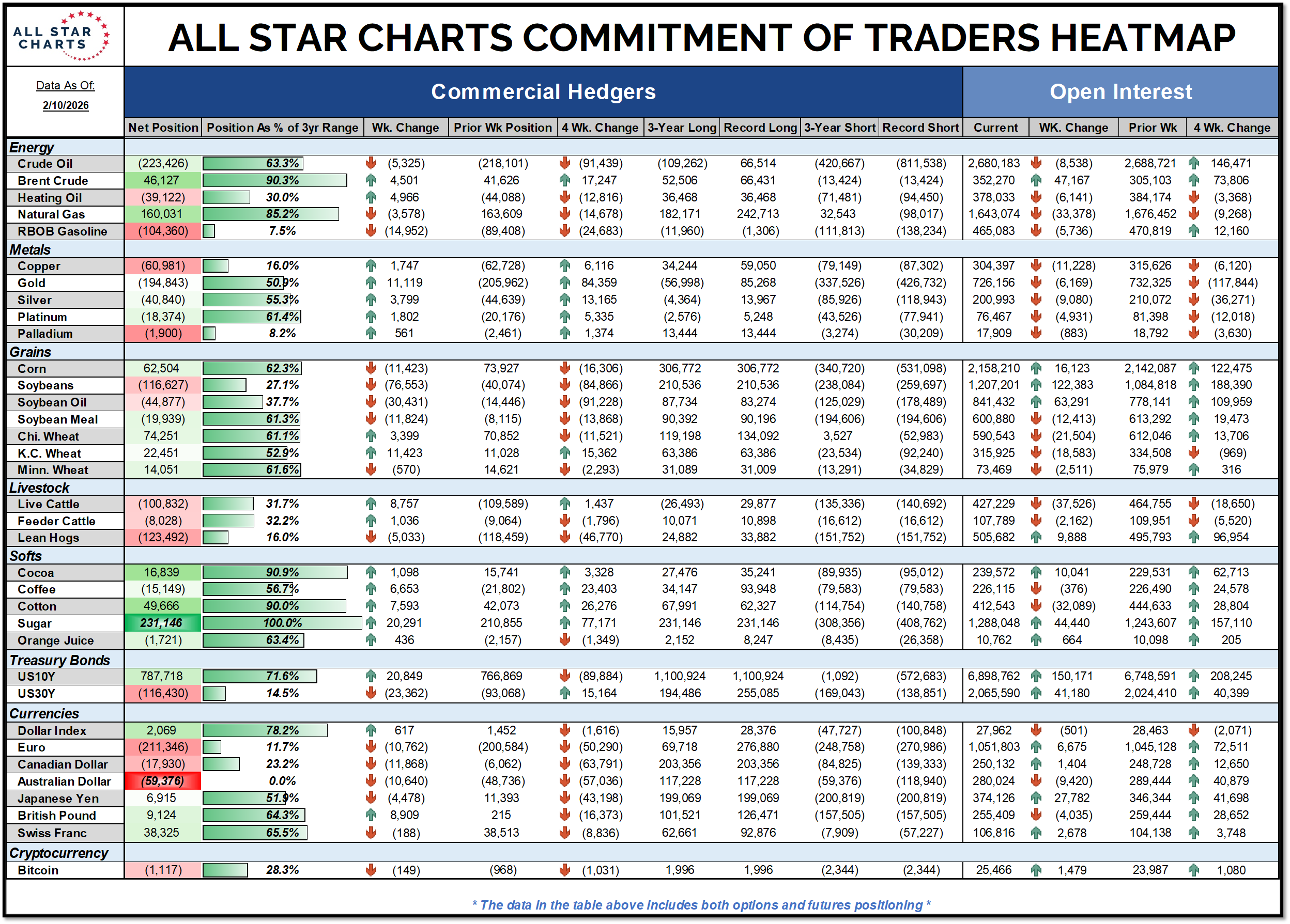 Softs - Commercials added over 20,000 contracts and set a new record net-long position in Sugar. Massive net-long positions have historically come near major lows.