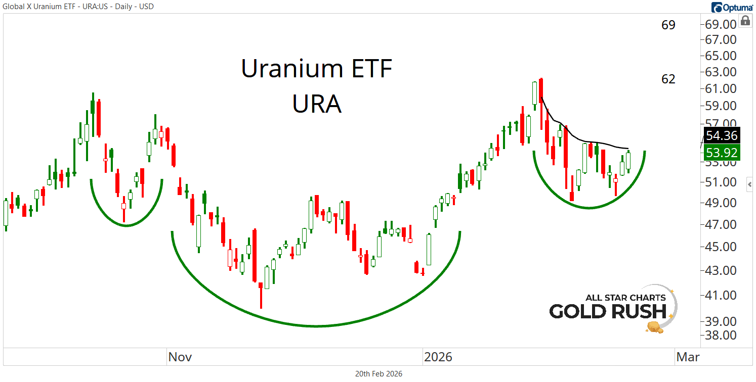 Since peaking last October, URA has worked off overbought conditions, carving out what looks to be a well-defined accumulation structure.