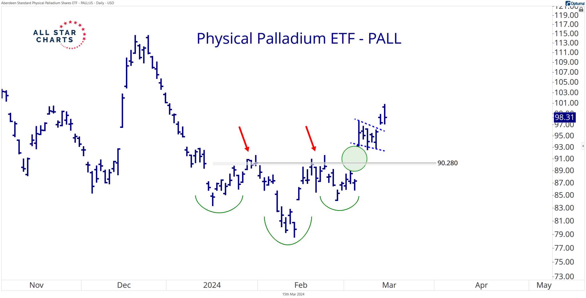 For all the traders out there who don’t have the account size for a responsible palladium position or don’t trade futures, the ABRDN Physical Palladium Shares ETF $PALL is your ride!
