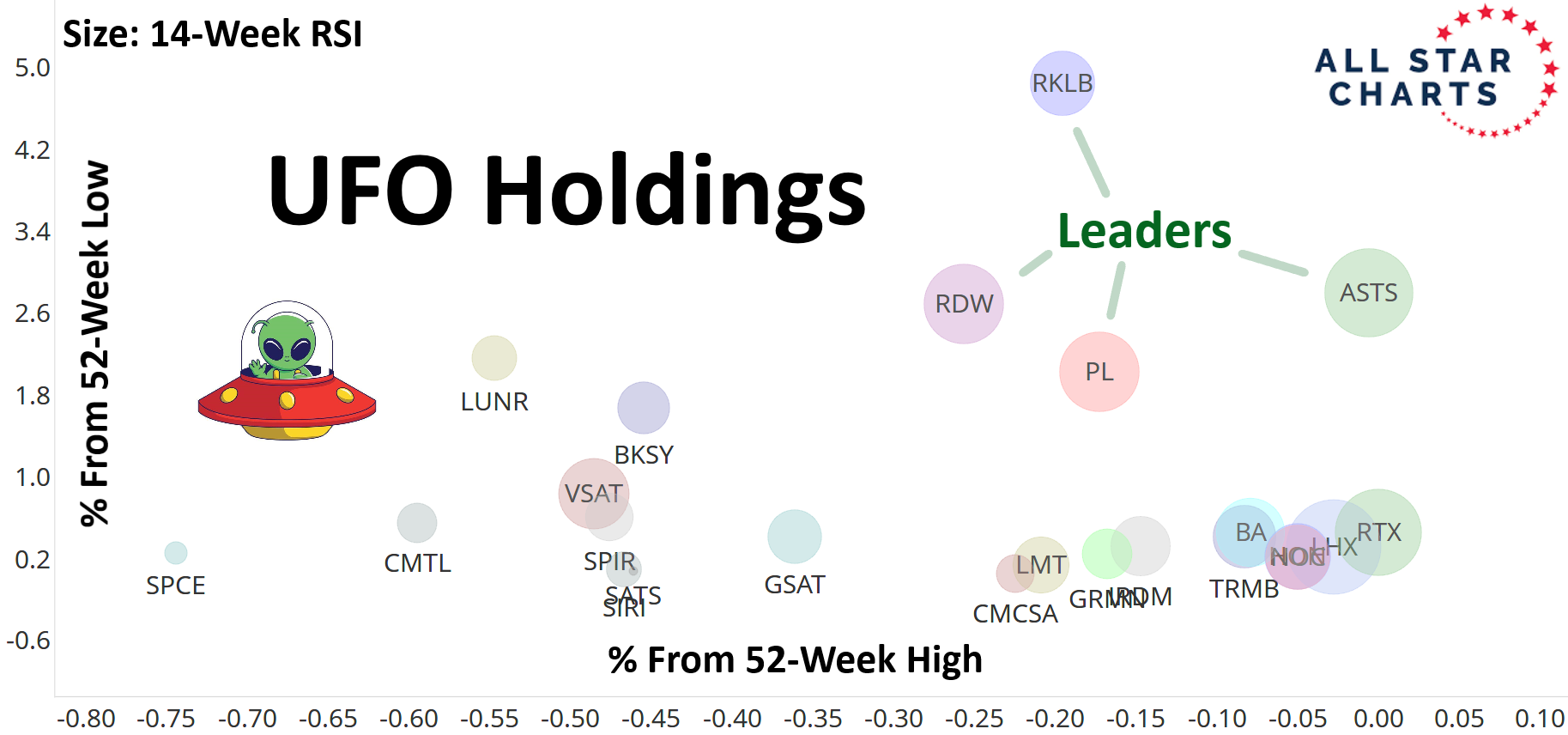 All Star Charts Premium Members Only Houston, the Shorts Have a Problem 🚀 By Sam Gatlin June 15, 2025 Short sellers are under pressure, and it’s starting to show.They’ve been caught leaning the wrong way and are scrambling to unwind their bets.That’s when we like to step in with our Freshly Squeezed strategy, right as the squeeze begins.Here's our latest scan: As you can see, Phathom Pharma $PHAT, Tango Thera. $TNGX and AST SpaceMobile $ASTS are at the top of the leaderboard. Over the last 10 trading sessions, they've rallied 150.4%, 111.3%, and 66.3%, respectively.The squeeze in Sezzle $SEZL is continuing to unfold. The stock is up nearly 60% since we bought it last month.We also have tables sorted by short interest and days-to-cover.Now let’s break down today’s setup and why we think the short sellers are about to be blasted into orbit.AST SpaceMobile $ASTS is a $12.6B space broadband company aiming to bring satellite-based internet directly to smartphonesIt’s basically Starlink… but with one big caveat...They’ve already secured deals with over 45 telecom providers around the world.Starlink? Still shipping hardware and not partnering with the existing telecom providers.This is a high-beta, speculative name, precisely what we look for in our Freshly Squeezed strategy.Moreover, its peers have also been ripping.Space stocks are so hot right now 🛸 This bubble chart shows the holdings of the Procure Space ETF $UFO. The leaders are farther up and to the right, and the laggards are vice versa.ASTS is the 2nd largest component of the fund, behind Rocket Lab $RKLB. They're leaders, along with Redwire $RDW and Planet Labs $PL.AST SpaceMobile went 19x from April to August, a historic rally during which the 14-day RSI consistently hit the 80s.Its peers also performed well during this period, but none returned close to 19x. This has been and still is the relative strength in space stocks.Since then, it has quietly formed a clean, multi-month accumulation pattern.Meanwhile, short interest remains sky-high at 31%, with a 4x days-to-cover ratio.We think the squeeze is underway, and last week’s fresh all-time high is the ignition point.Here's how we're trading ASTS 👇 You need to have a subscription to access this content in full. Log in or subscribe today to unlock new features and receive Member Benefits. Log in or Subscribe More from All Star Charts Premium Ricardo Sarraf Boomtown December 16, 2025 Sam Gatlin Jason Perz Rocks > Stocks Precious metals are finally breaking out relative to equities. December 15, 2025 Steve Strazza The Minor Leaguers December 15, 2025