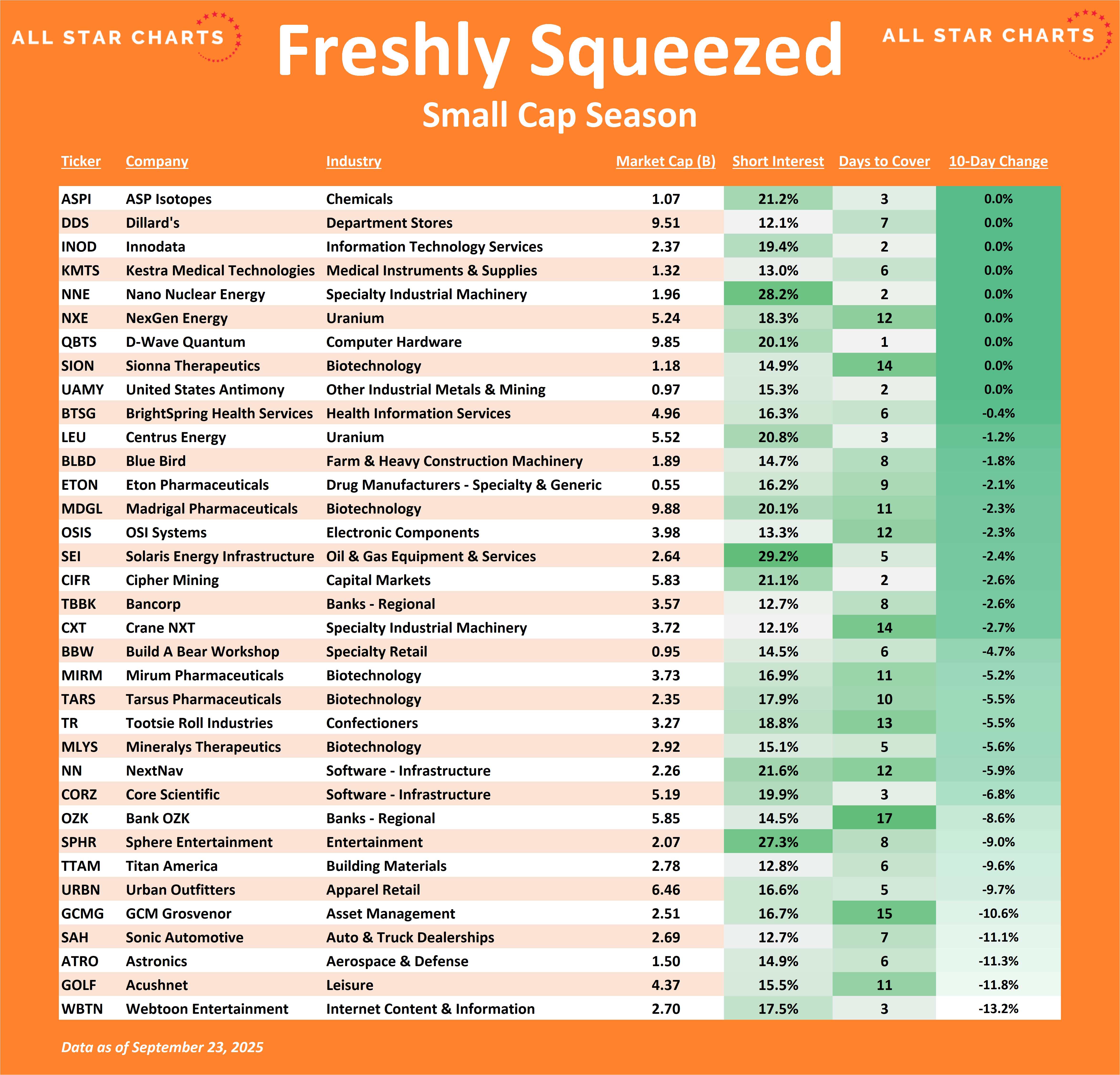 For the purposes of this Special Report, we are focused on only the Small-cap version of the Freshly Squeezed Stocks. So we’re only looking at companies between $1-10 Billion in market-cap.