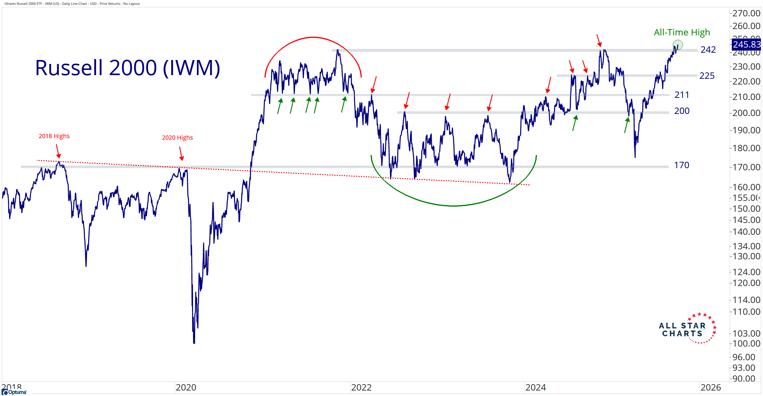 Momentum remains strong, and the Russell 2000 is building acceptance above the former ceiling that once defined its limits.