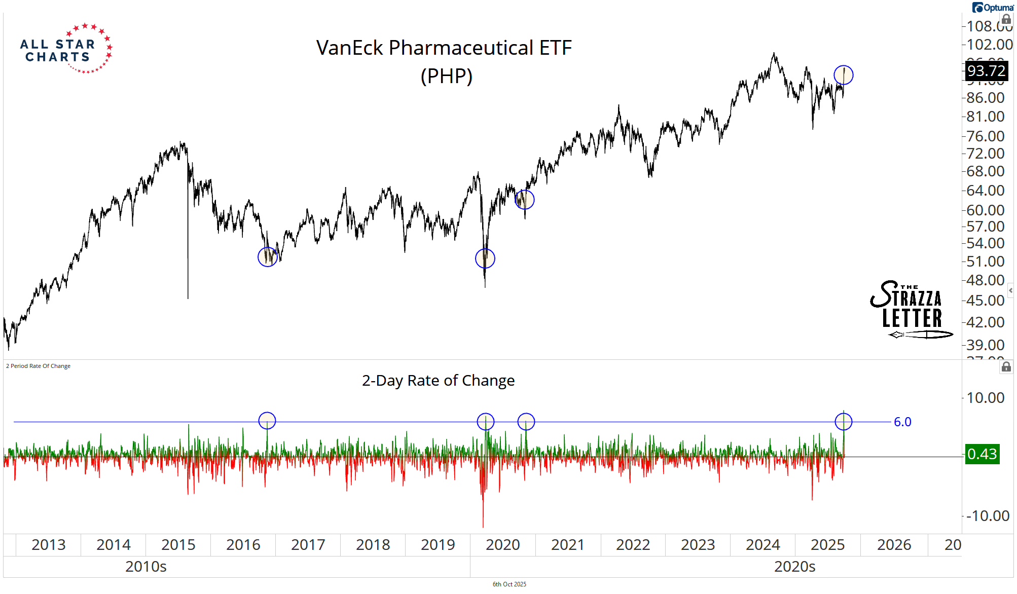 Against a washed out sentiment backdrop, pharma indexes posted a similar initiation-style momentum reading last week, confirming what we’re already seeing under the hood.