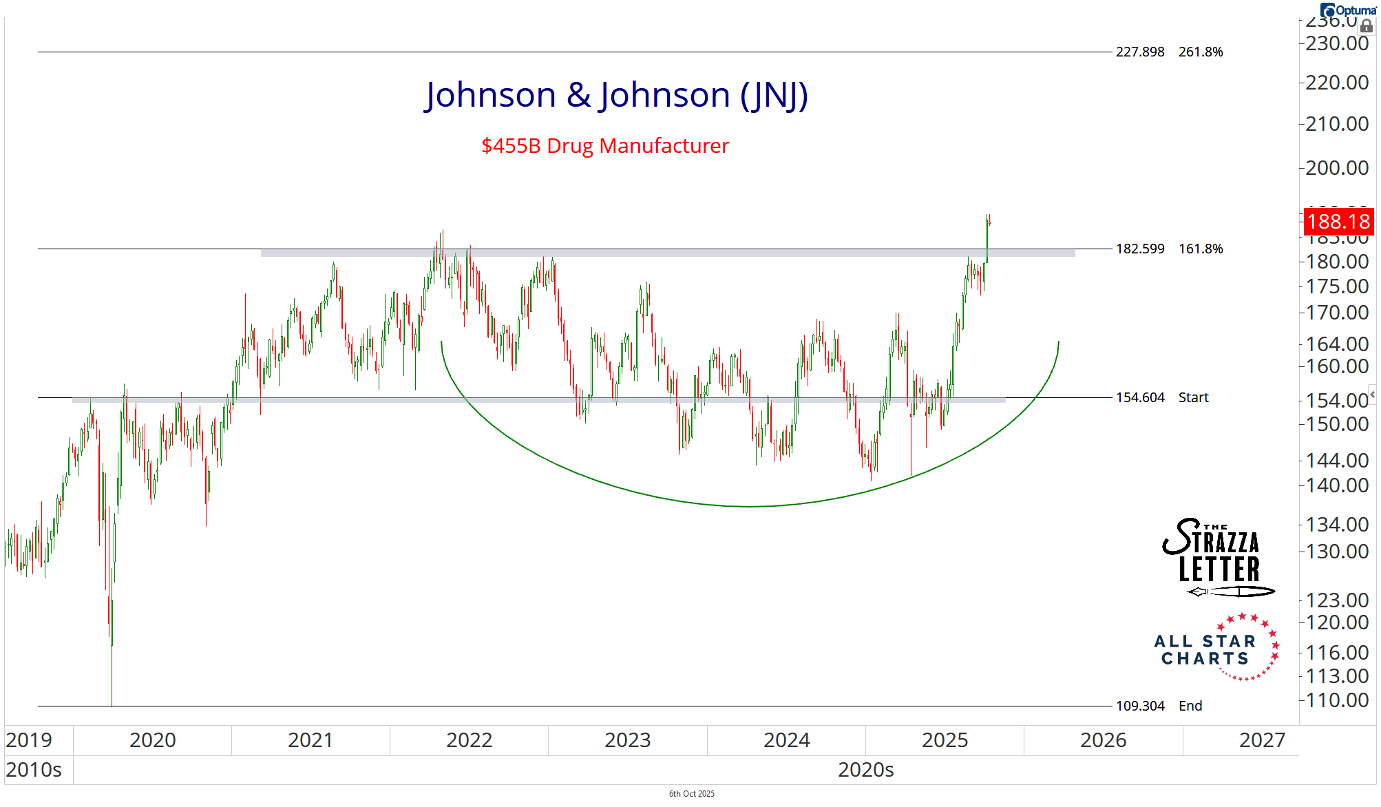 After years of chopping sideways, Johnson & Johnson has finally resolved higher from a massive multi-year base.