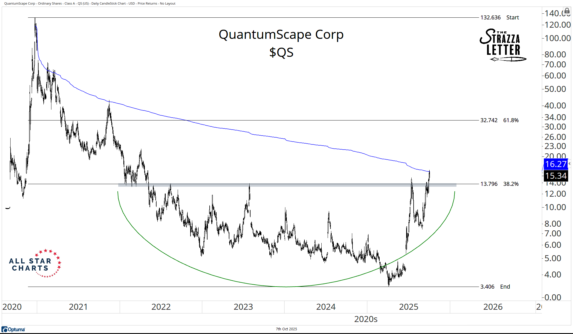 Last but not least is an auto parts quantum stock. This one has quantum in the name, but they make EV batteries. But like I said, we’re trading the pattern here, not the business model. Here’s QuantumScape Corp $QS: