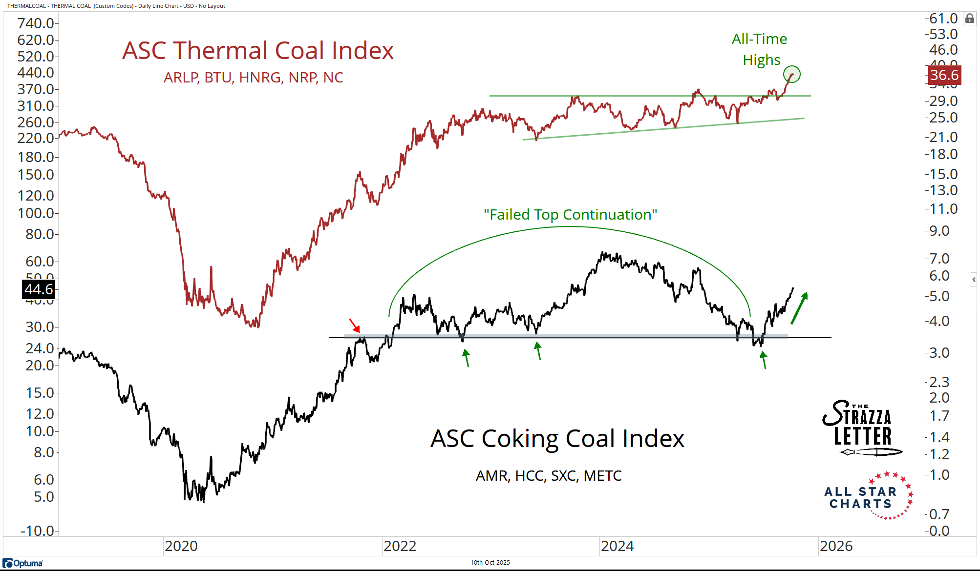 Here’s our custom ASC Coal Index, which has been screaming higher after failing to break down earlier this year: