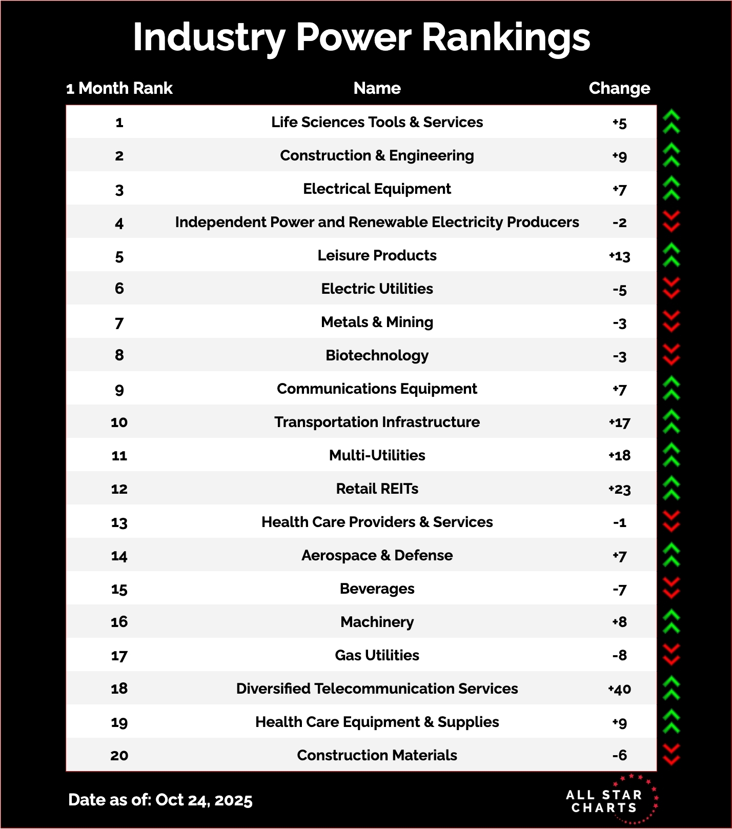 Here’s a look at our overall industry rankings, which show Life Sciences Tools jumping five spots to reach the top.