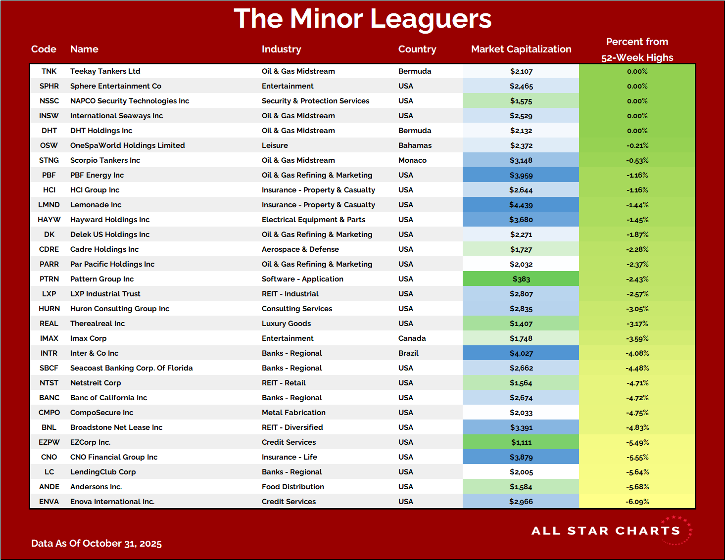 Nowadays, to make the cut for our Minor Leaguers list, a company must have a market cap between $1 and $4B.