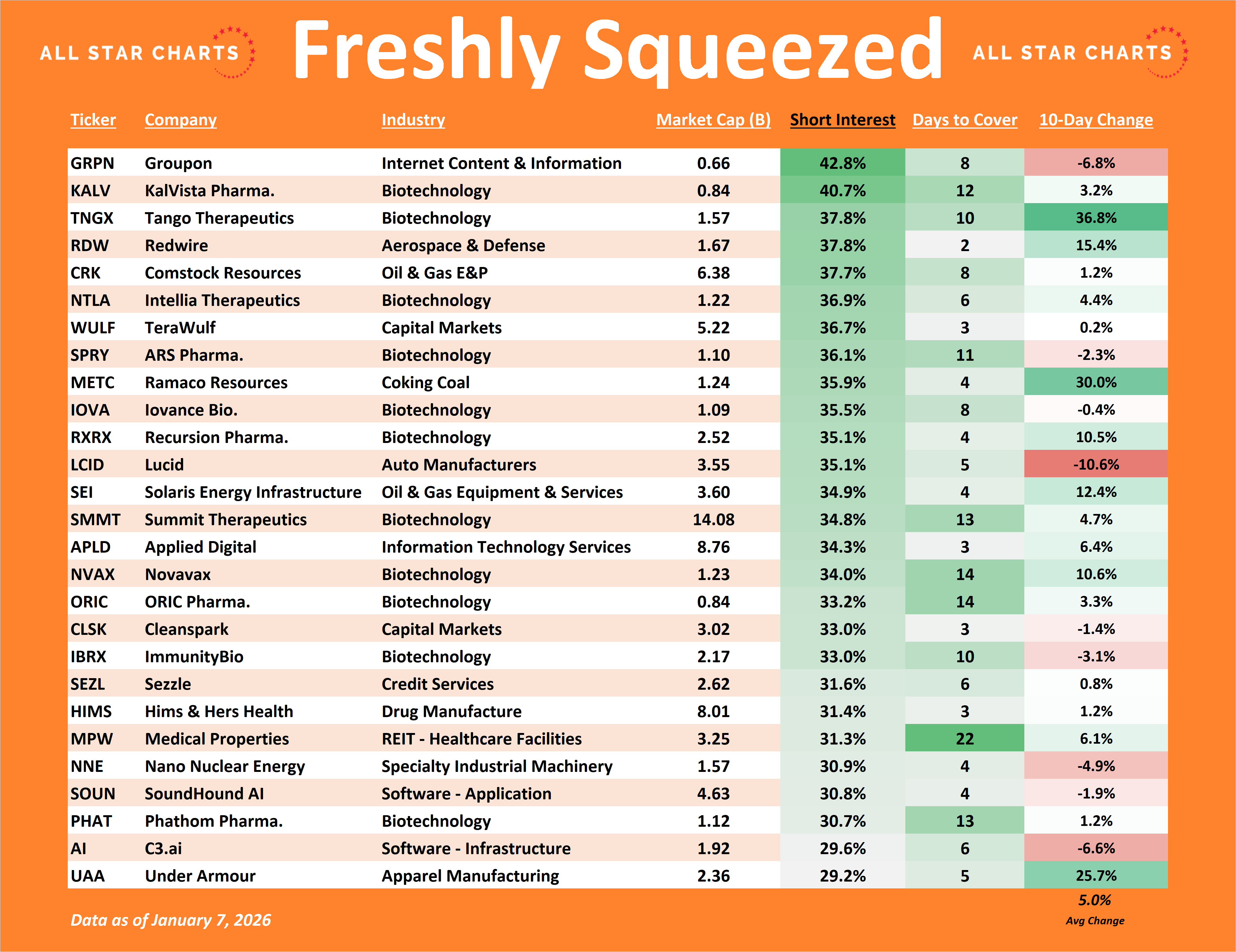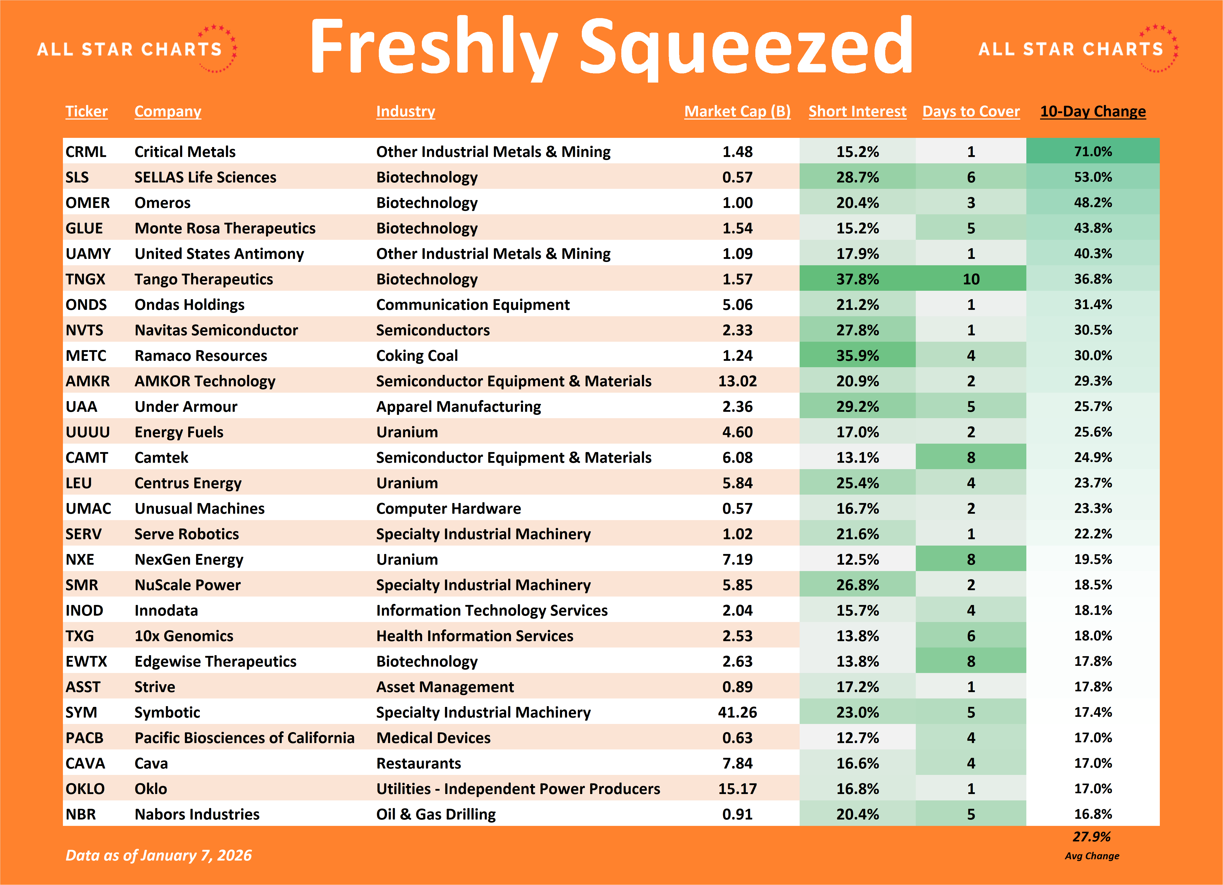 We’re also tracking squeeze candidates by short interest and days-to-cover, two critical ingredients for sustained upside. These are where the next squeezes will come from.