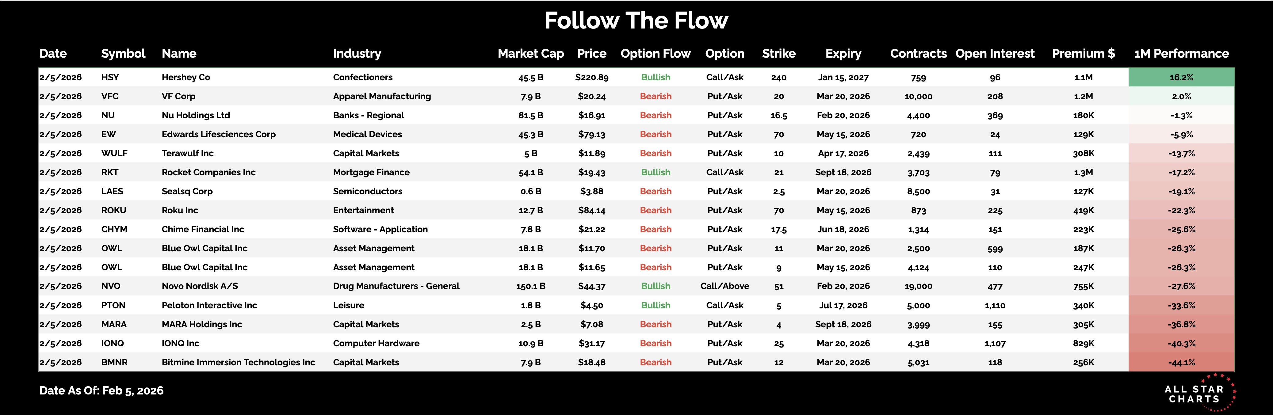 Here is the list of Unusual Options activity from February 5: