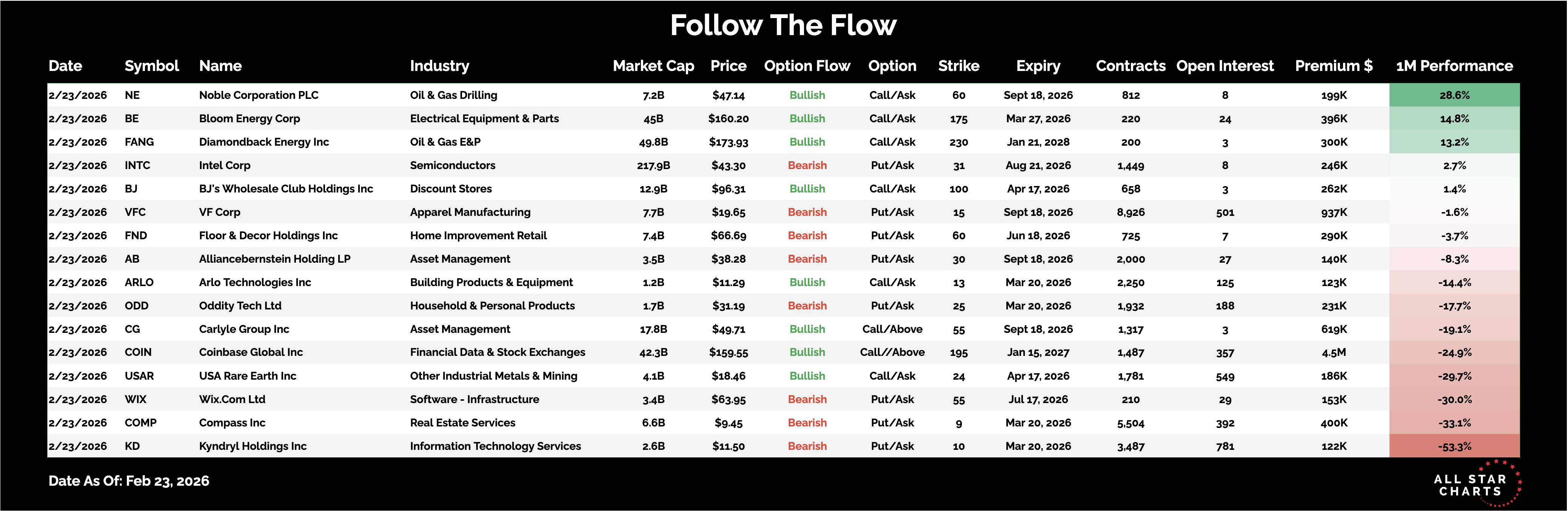 Here is the list of Unusual Options activity from February 23: