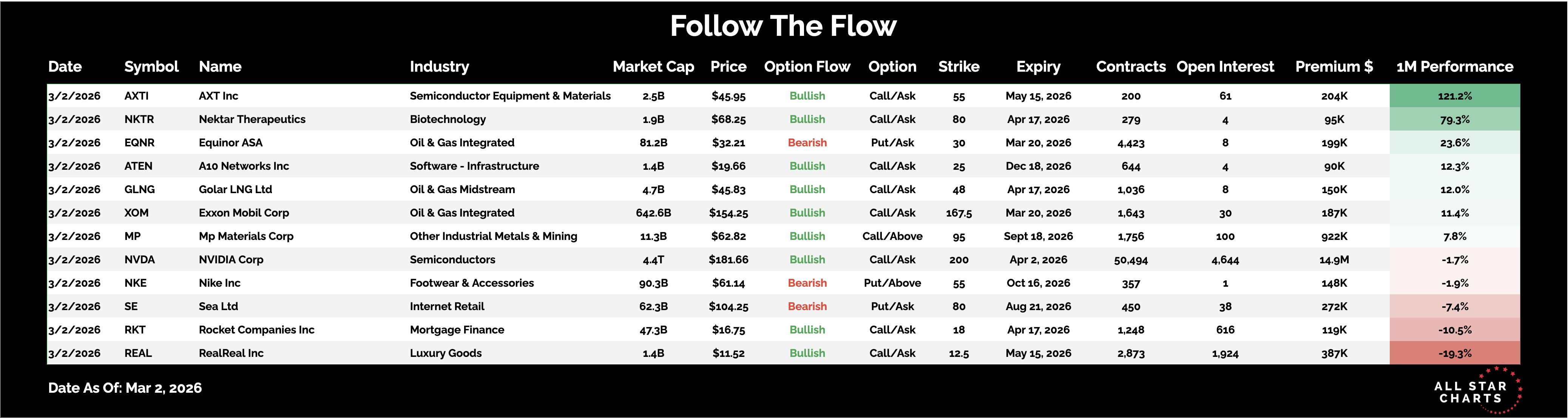Here is the list of Unusual Options activity from March 2: