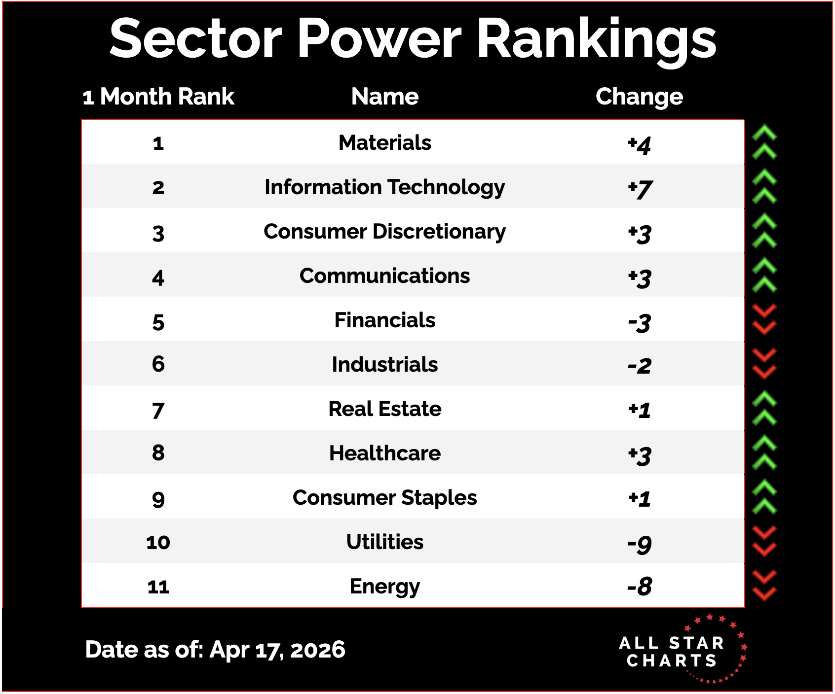 This week’s standout has to be Technology, surging 7 spots into second place in our sector rankings.