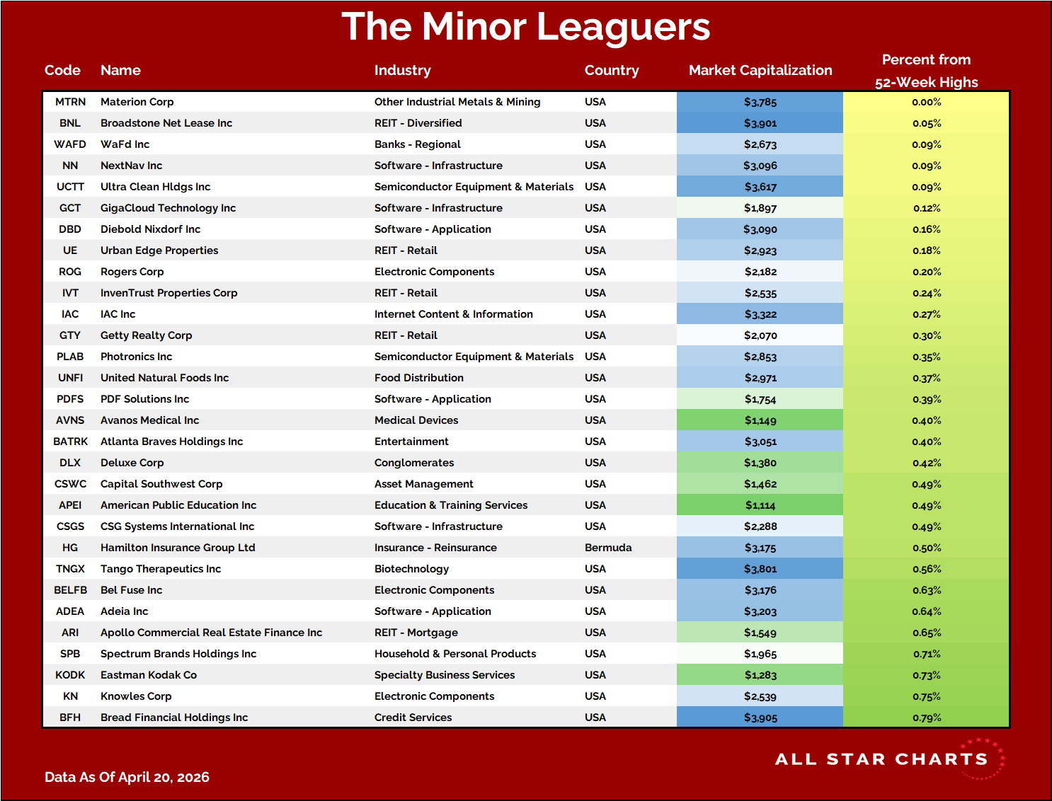 Nowadays, to make the cut for our Minor Leaguers list, a company must have a market cap between $1 and $4B.