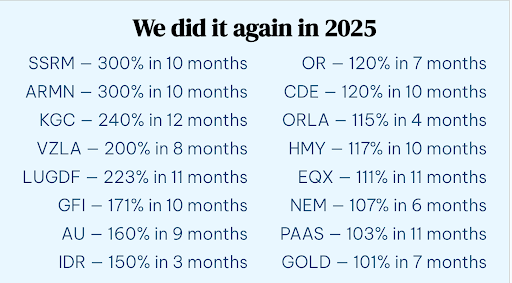 Together, Jason and Sam have built one of the most consistent commodity rotation track records in independent financial publishing — 14 winning positions in 2025 alone, every one of them beating the underlying commodity it was tied to.