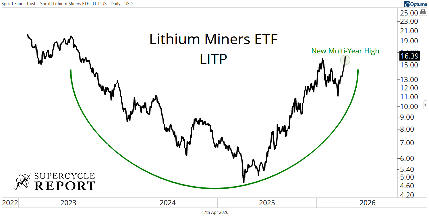 The Lithium Miners ETF $LITP is up roughly 50% since its late-March low and more than 250% from its 2025 bottom.