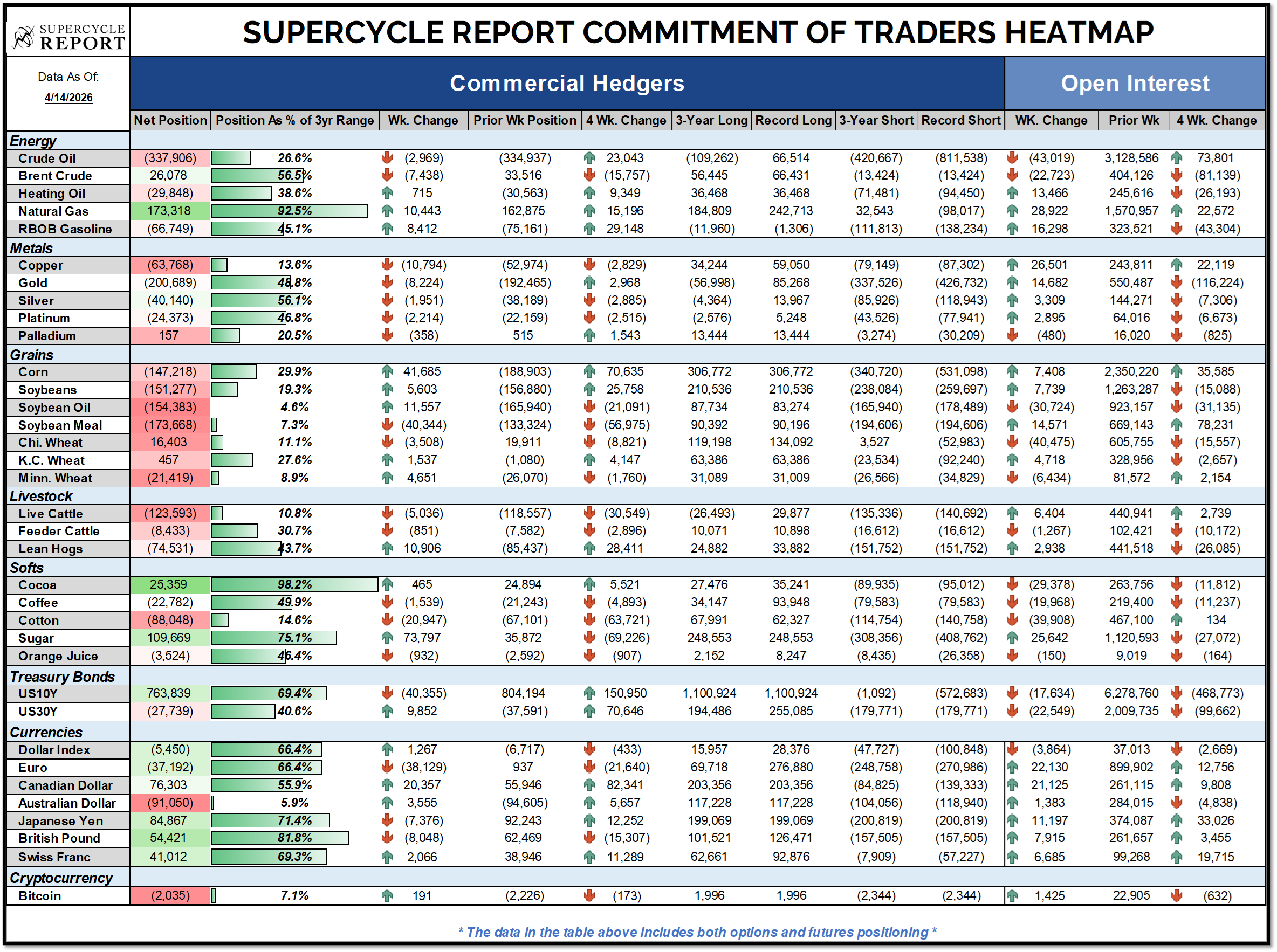 Metals - Commercial hedgers added nearly 11,000 contracts to one of their largest net-short Copper positions in years. At the same time, the price closed the week at a fresh all-time high.